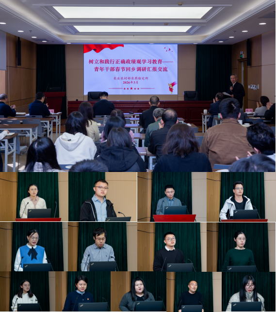 会上,13名青年干部紧扣“树立和践行正确政绩观”核心主题,立足基层一线、回乡调研的实践经历,结合自身工作实际深入交流学习心得、坦诚分享感悟。汇报过程中,大家思路清晰、见解深刻,从现代农业高质量发展路径、乡村旅游产业培育、耕地规范流转、农村厕所革命、农村养老服务体系建设,到农户农药使用行为习惯、新型农业经营主体发展状况、农村灾后重建推进,再到小辣椒、马蹄、蓝莓等特色产业助农兴农实践等多个维度,全面、系统展现了农业农村改革发展的新变化、基层治理的鲜活经验及存在的短板难题。